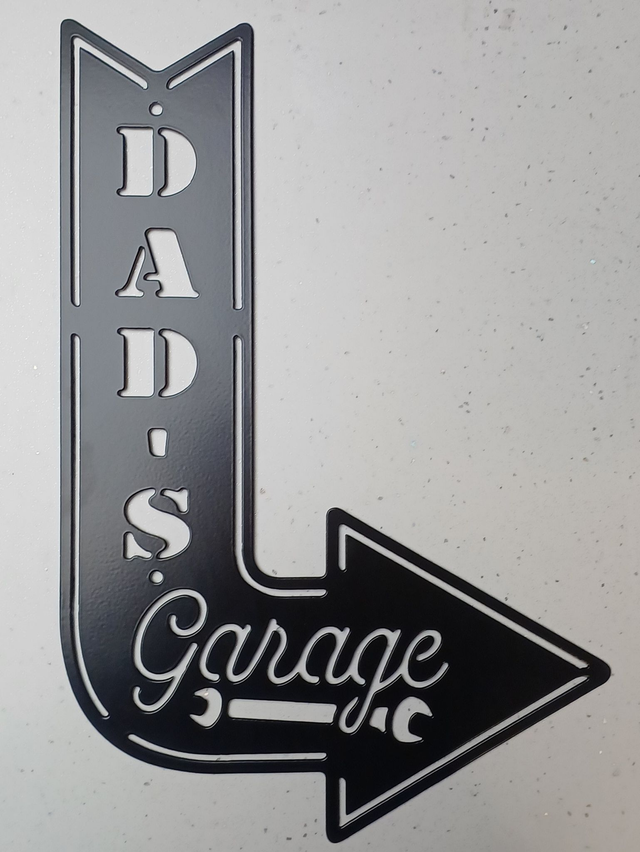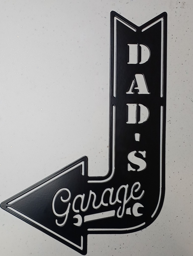 steel dad's garage sign ideal for shed,garage etc made from 2mm thick steel and powder coated black